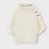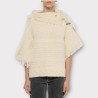 Pull manches courtes en maille torsadées, col à ourlets. Fermeture à boutons sur l'épaule gauche. Boutons style bambou. Bords brut à effet frange. Coupe large et droite.