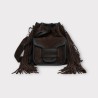Le modèle emblématique ALPHA se métamorphose en un sac seau à la silhouette décontractée. En cuir ou en daim, ce sac peut être agrémenté de franges, offrant audace et liberté.